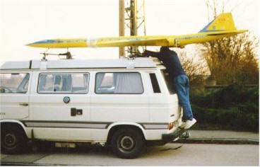 Das Modell kann wegen Übergrösse leider nur auf dem Autodach (hier ein Ford-Kombi) transportiert werden ...